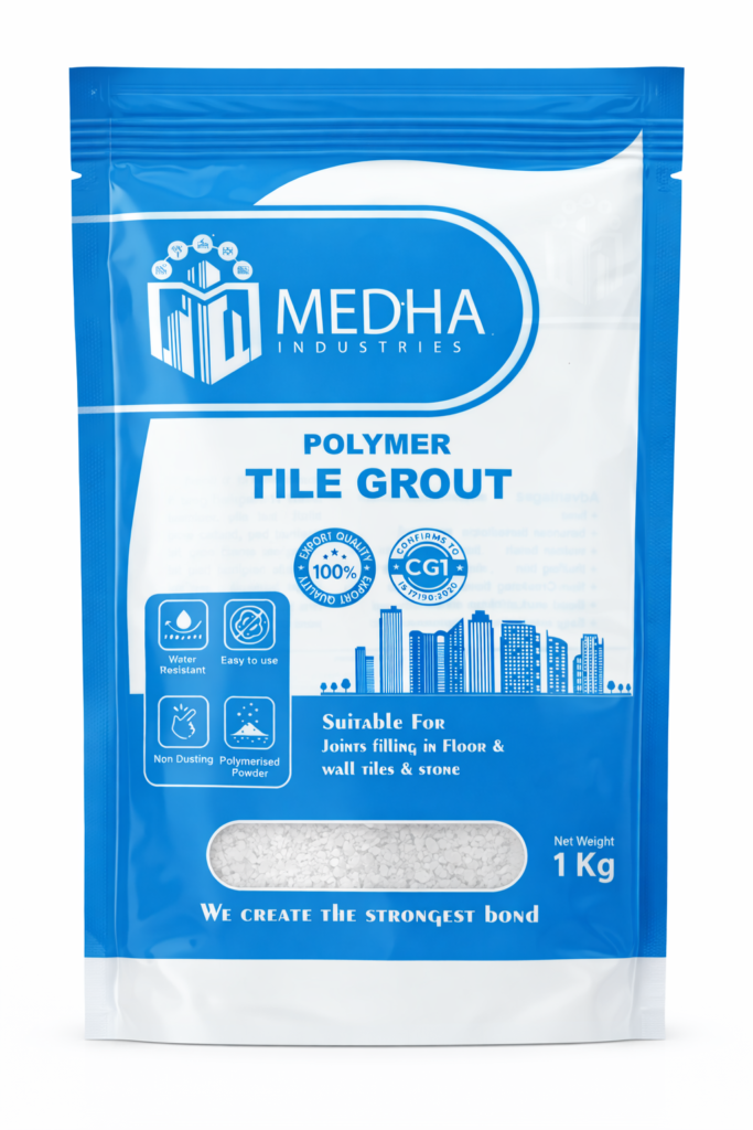 Medha Cementitious Polymer Tile Grout is a water-resistant, non-cracking, and non-shrink polymer-modified grout designed for joint widths of 1mm to 3mm. It effectively fills gaps and levels itself to give hard-wearing and non-dusting tile joints. It firmly holds tiles together to ensure long life for glazed wall tiles, mosaics, vitrified, and floor tiles.